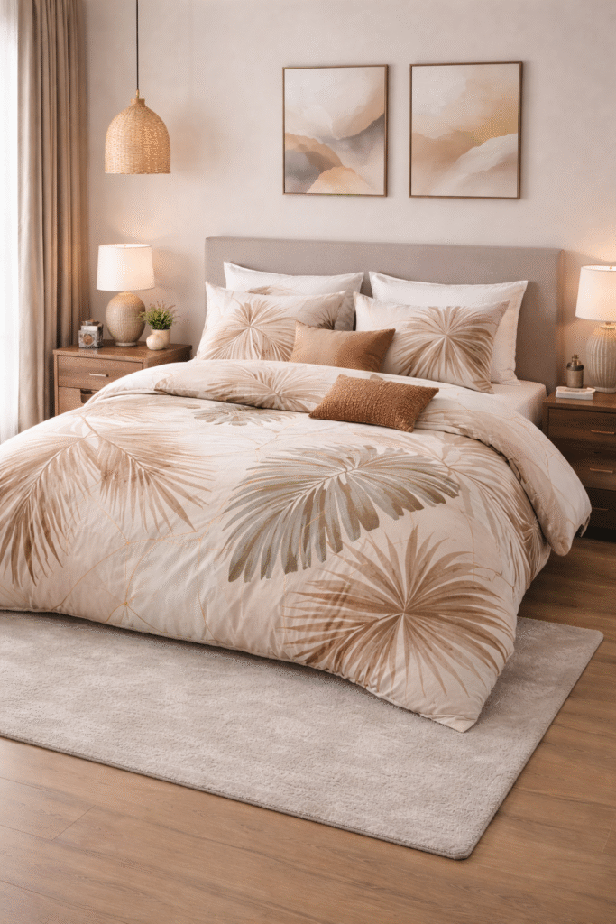 Small accessories help complete the bedroom design. Bed runners, soft throws, and simple bedside decor can make the space feel more polished. Lighting also plays an important role because warm light creates a relaxing and cozy atmosphere.