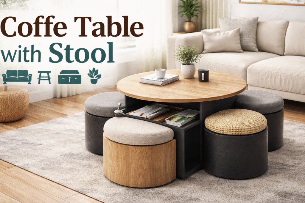 A coffee table with stool is a smart piece of furniture designed for modern homes. It features a table accompanied by small stools that usually fit neatly under or around it. This simple idea has gained popularity because it saves space and provides extra seating when needed.