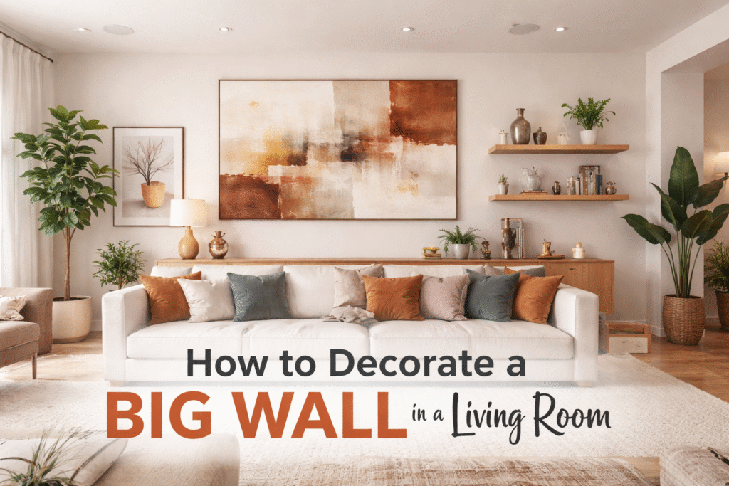 When people search for how to decorate a big wall in a living room, they usually feel stuck with a large empty space that looks plain or unfinished. A blank wall can make the whole room feel cold and unbalanced. The goal is to turn that space into something that feels warm, stylish, and complete.