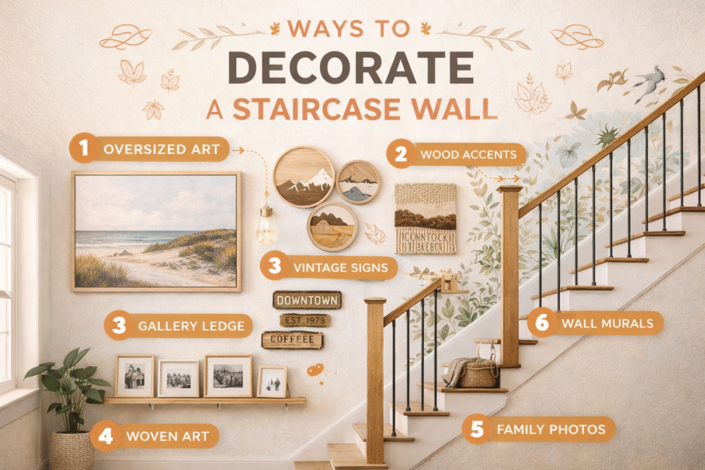 The best approach to how to decorate staircase wall is to combine beauty with function. A well-designed staircase wall should feel safe, organized, and visually pleasing. When done correctly, it can become one of the most attractive parts of your home while still remaining practical for everyday use.