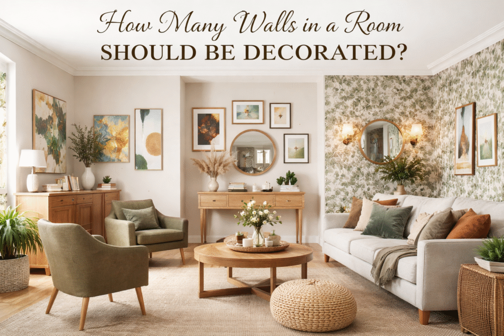 In the end, the number of walls you decorate is less important than how balanced the room feels. For most spaces, decorating one or two walls is the best choice. This creates a strong design without making the room feel too busy.